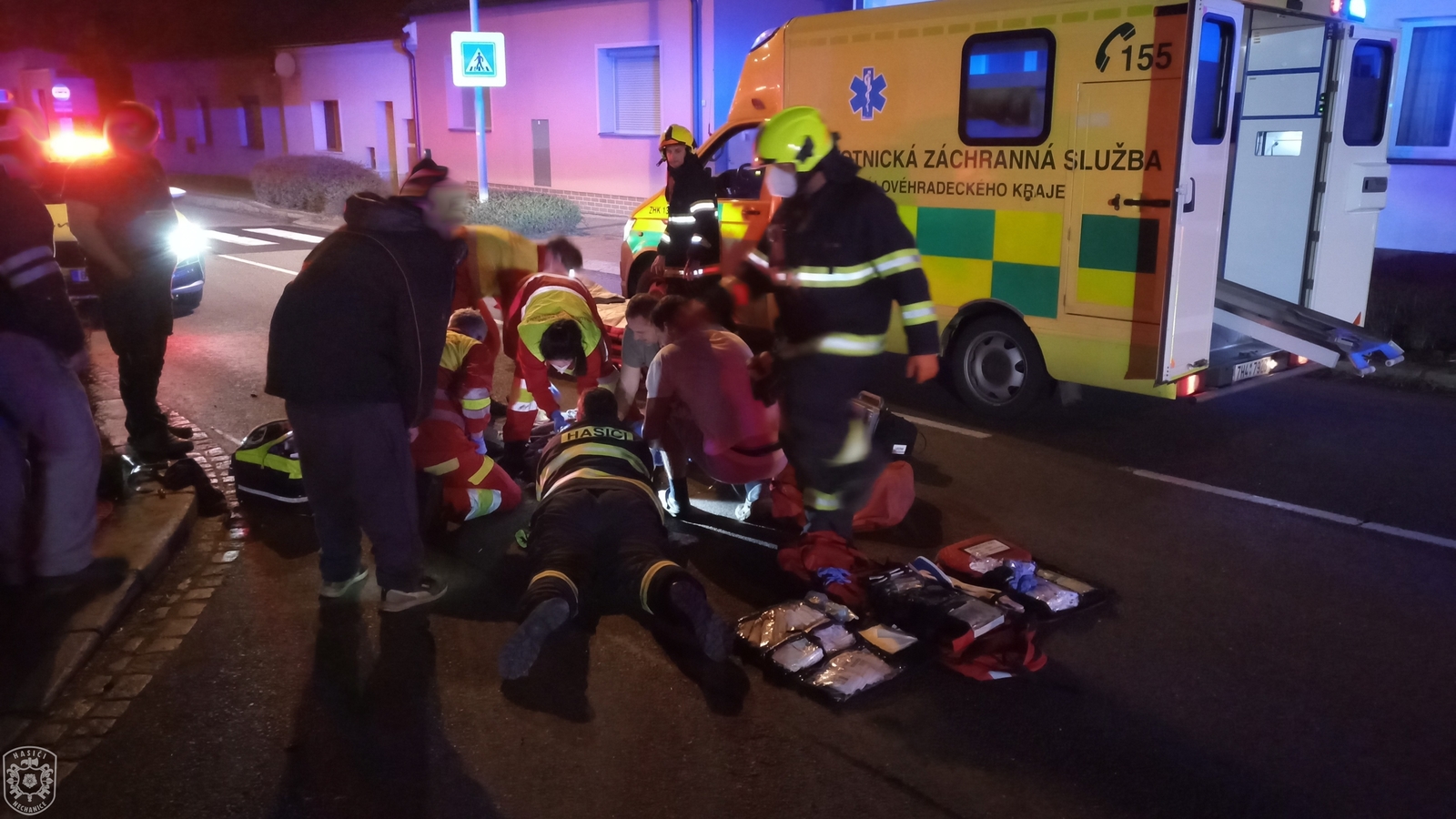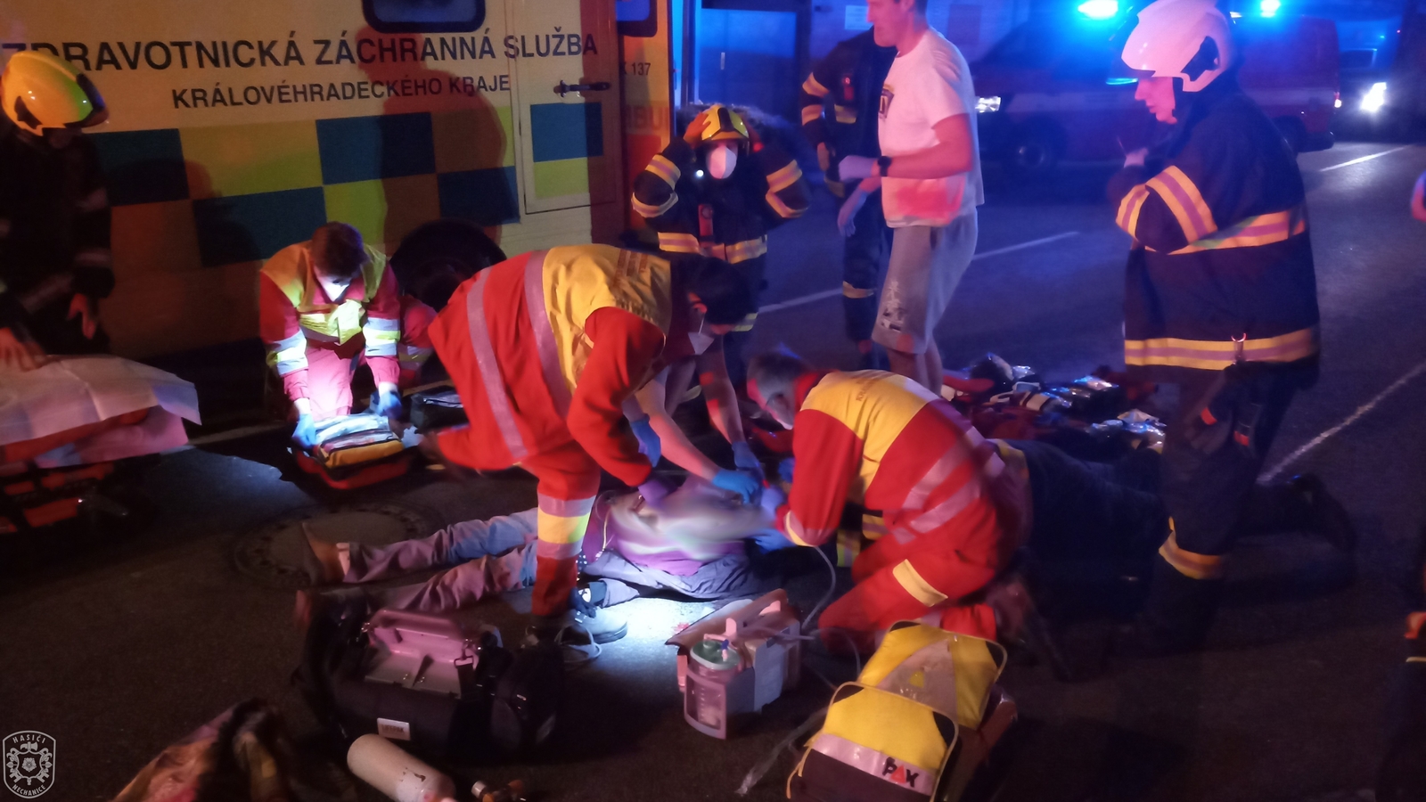 Jednotka vyjela, spolu s profesionálními hasiči ze stanice Hradec Králové - Pražská, k dopravní nehodě jednoho osobního vozidla, které mělo srazit osobu na přechodu. V době příjezdů hasičů na místo události byli na místě již dobrovolní hasiči v civilu, kteří zastavili u místa cestou do hasičské zbrojnice po vyhlášení poplachu. Hasiči poskytli těžce zraněné osobně předlékařské pomoc a po příjezdu zdravotnické záchranné služby královehradeckého kraje ji předali do jejich péče a dále spolupracovali při ošetřování a následném transportu do vrtulníku LZS, který zraněnou osobu transportoval do zdravotnického zařízení. Zároveň hasiči provedli nasvícení místa události. Během záchranných prací musela být komunikace pro veškerý provoz zcela uzavřena. Po ukončení záchranných prací byl provoz v místě nehody řízen kyvadlově a na místě zůstala pouze naše jednotka, která nasvítila místo události pro potřeby policie České Republiky. Po zaznamenání nehody PČR hasiči očistili komunikaci a poté se jednotka vrátila zpět na svoji základnu.