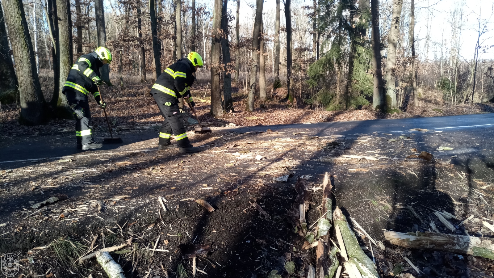 Jednotka vyjela, spolu s profesionálními kolegy z novobydžovské stanice (jednotka odvolána cestou na místo události pro dostatečný počet SaP), k odstranění stromu spadlého na pozemní komunikaci. Po příjezdu na místo události bylo průzkumem zjištěno, že strom, jenž byl značně suchý, se pádem na komunikaci zcela rozlámal. Hasiči tak z cesty odnosili zbytky stromu a zbytek třísek zametli pomocí košťat. Po úklidu komunikace se jednotka vrátila na základnu.