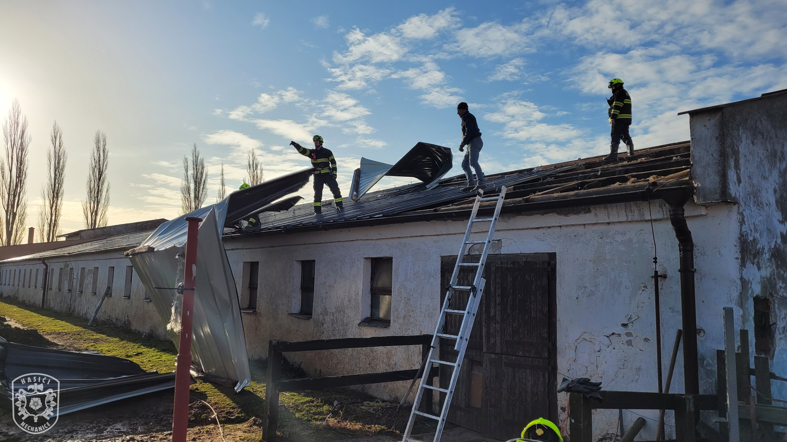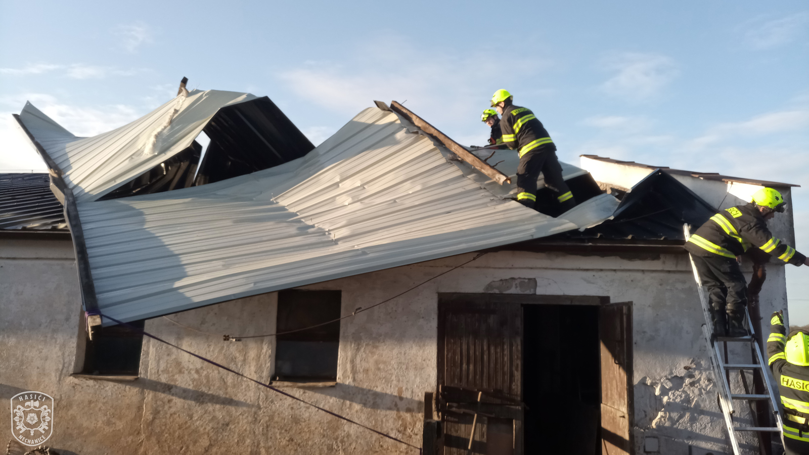 Jednotka vyjela, spolu s profesionálními kolegy ze stanice Hradec Králové - Pražská, k zabezpečení střechy koňských stájí, která hrozila zřícením. Po příjezdu na místo události bylo průzkumem zjištěno, že plechová střecha je částečně odfouknuta. Hasiči ve spolupráci s majitelem odstranili poškozené plechy. Poté se obě jednotky na příkaz velitele zásahu vrátily na svoje základny.