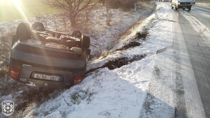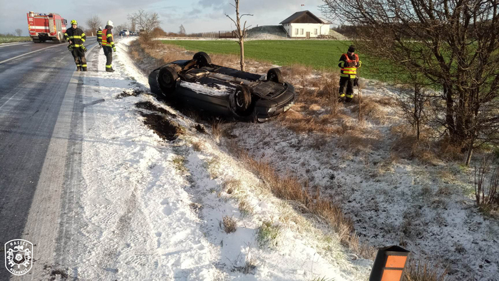 Jednotka vyjela k dopravní nehodě osobního automobilu. V době příjezdu hasičů se řidič nacházel mimo vozidlo, které dostalo na zledovatělé vozovce smyk, sjelo do příkopu, kde se následně převrátilo na střechu. Hasiči zajistili místo nehody a po příjezdu PČR jim předali místo události. Poté se obě jednotky vrátily zpět na svoje základny.