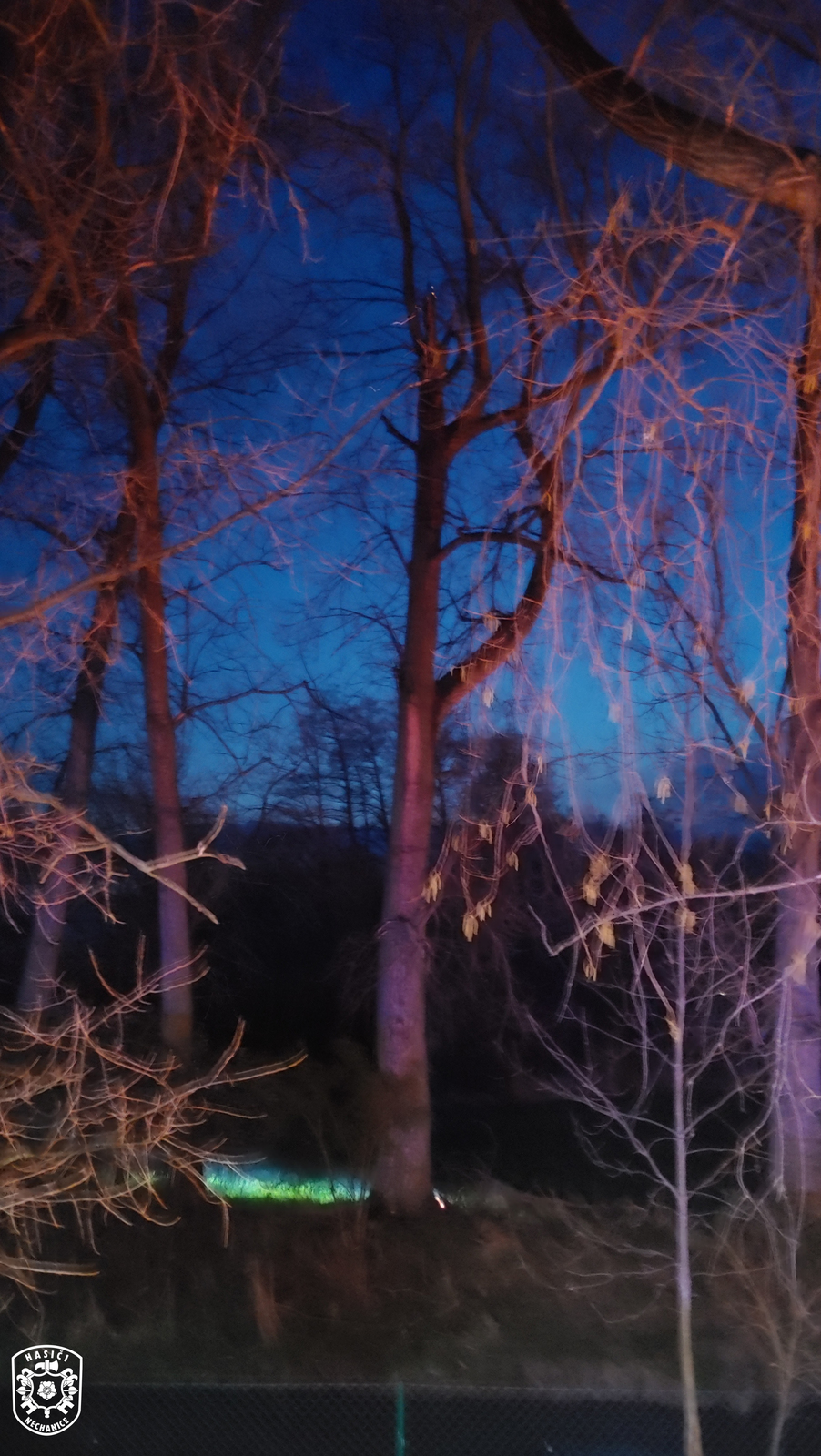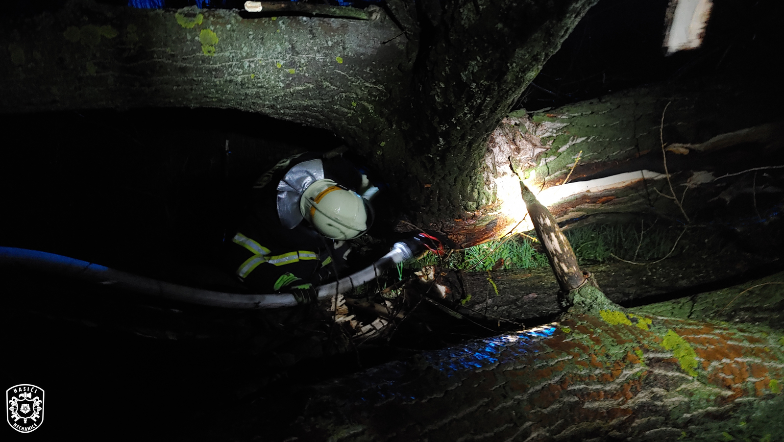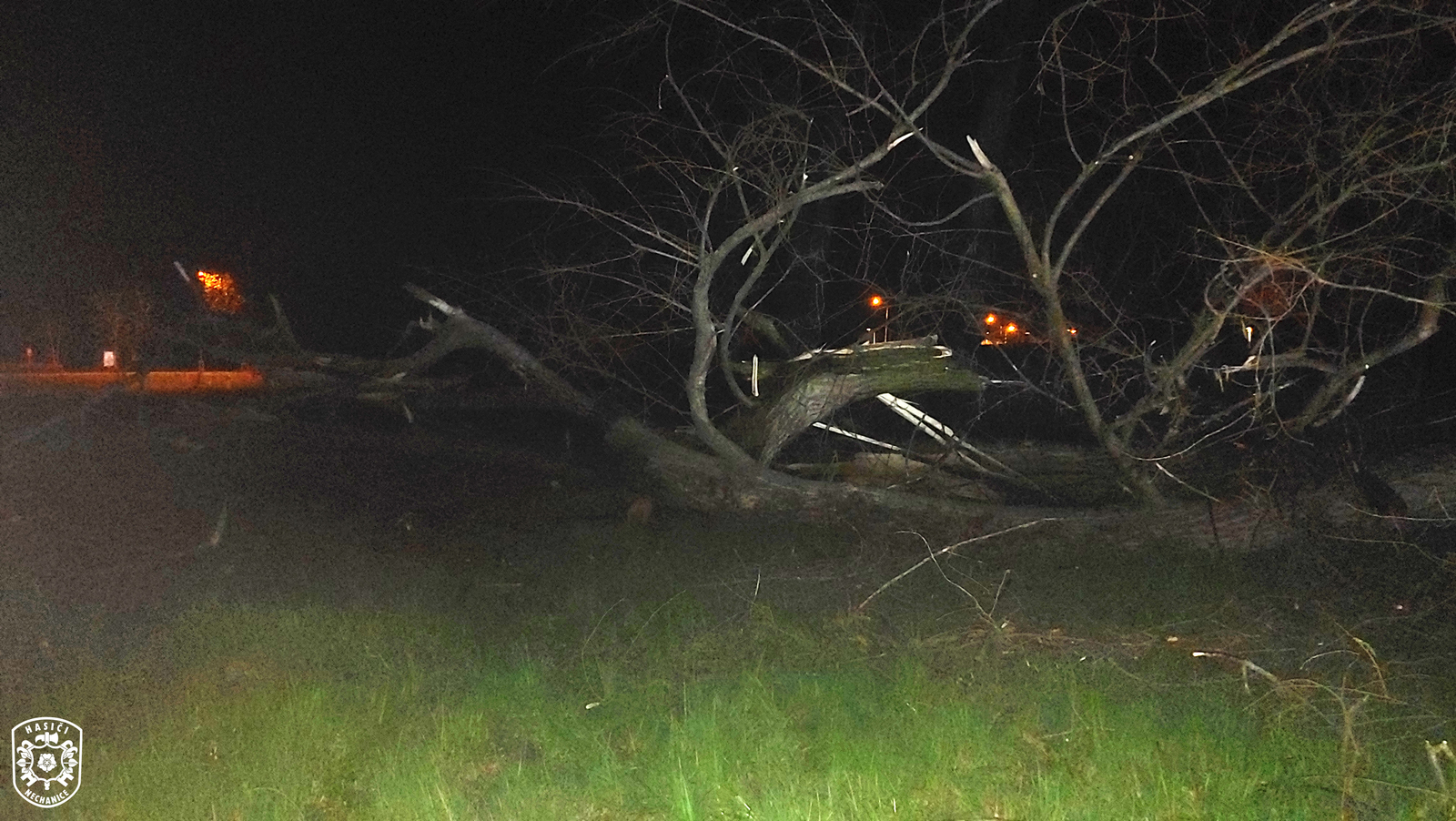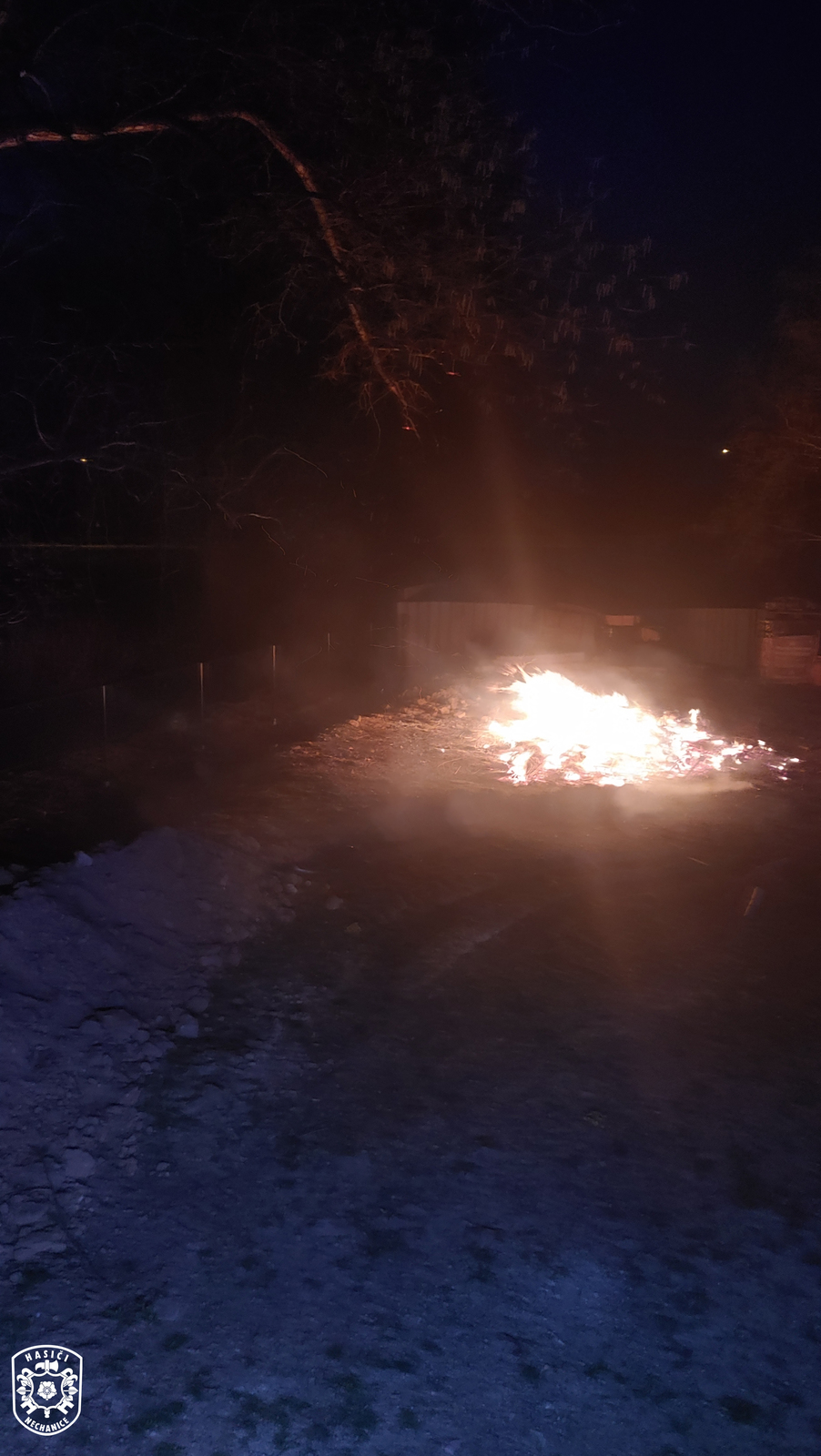 Jednotka vyjela, spolu s novobydžovskými profesionálními hasiči, k ohlášenému požáru, který vítr rozfoukal, oheň se tak rozšířil na dva stromy. Jeden strom hasiči uhasili rychle. Druhý strom hořel ve výšce cca 18 m. Vzhledem k výšce a povětrnostním podmínkám se ze země oheň podařilo pouze lokalizovat. Kvůli podmáčení okolí nebylo možno využít výškovou techniku, proto velitel zásahu rozhodl o jeho pokácení. Hasiči tak za pomocí řetězové motorové pily vrostlý strom pokáceli. Po jeho pokácení se ukázalo, že strom je z větší části dutý a hoří uvnitř. Hasiči ho poté dohasili. Nakonec strom i jeho přilehlé okolí zkontrolovali pomocí termokamery. Poté se obě jednotky vrátily na svoje základny.