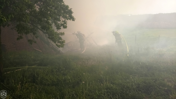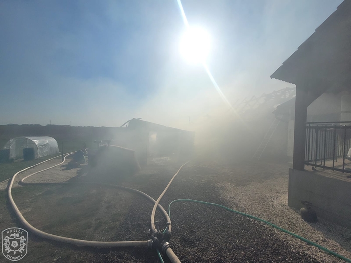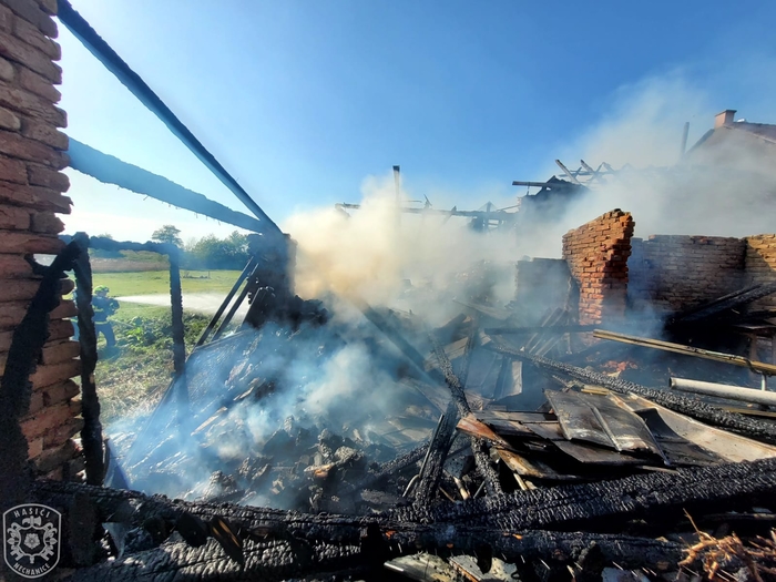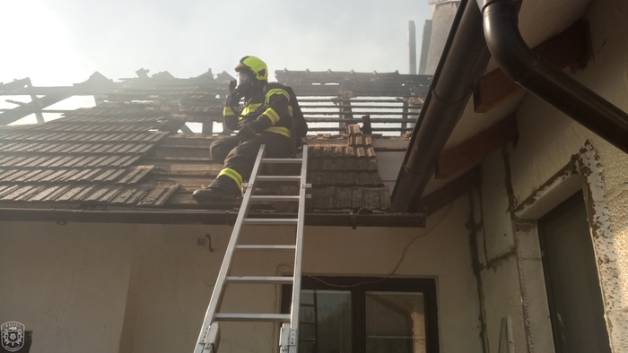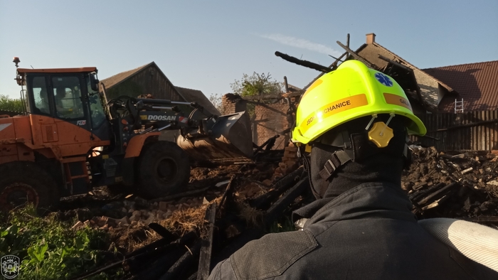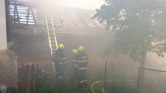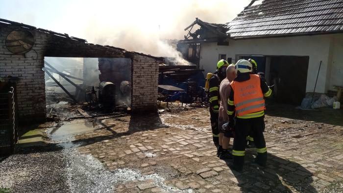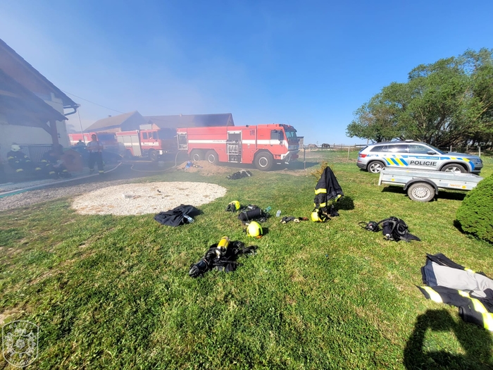 Jednotka vyjela, spolu s dalšími profesionálními a dobrovolnými jednotkami, k požáru skládky zahradního odpadu a hospodářské části rodinného domu. Hasiči na likvidaci nasadili celkem 5 útočných proudů. Hasiči velmi rychle zastavili šíření plamenů a uchránili tak před plameny zbytek rodinného domu. Po celou dobu museli zasahovat v dýchací technice. Ještě před příjezdem prvních požárních jednotek na místo, byla na místě hlídka PČR, která z dobu evakuovala jednoho staršího muže a tlakovou lahev se zkapalněným kyslíkem. Materiál z požářiště byl vyvážen pomocí nakladače a následně dohašován mimo objekt. K pokrytí spotřeby vzduchu v dýchací technice byl na místo přivolán i protiplynový kontejner z centrální hasičské stanice Hradec Králové. "Způsobená škoda je odhadnuta asi na 1,5 milionu korun, poškozena byla stodola, dílna, garáž a výměnek, vše včetně vybavení. Uchráněné hodnoty představují asi 4 miliony korun, zejména na obytné části domu." uvedla tisková mluvčí Martina Götzová. Během požáru nedošlo k žádné zranění. Kolem 19 hodiny se zasahující jednotky začaly vracet na svoje základny. Na místě byla ponechána místní dobrovolná jednotka, která během noci prováděla dohlídku nad požářištěm.