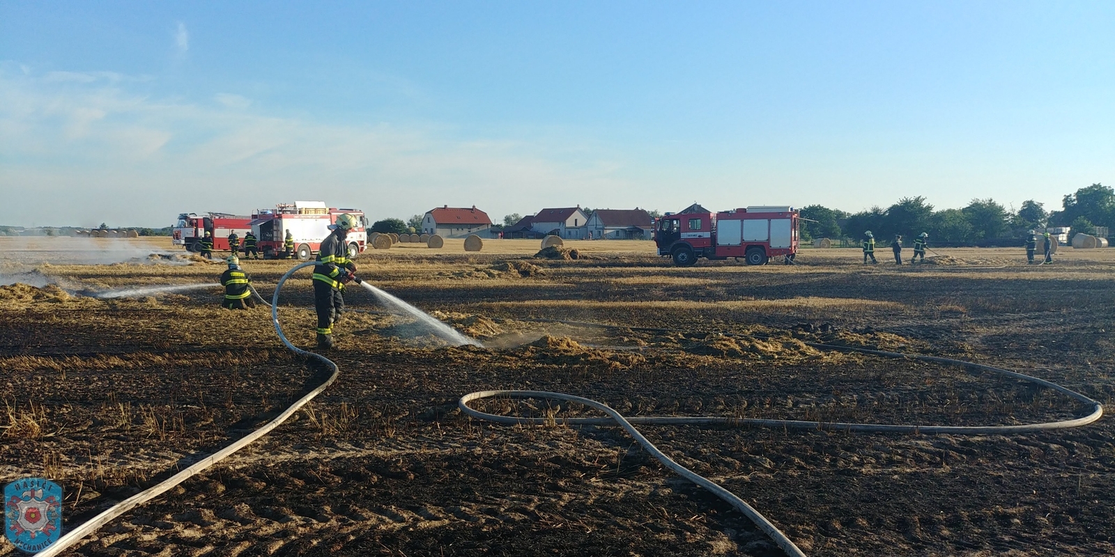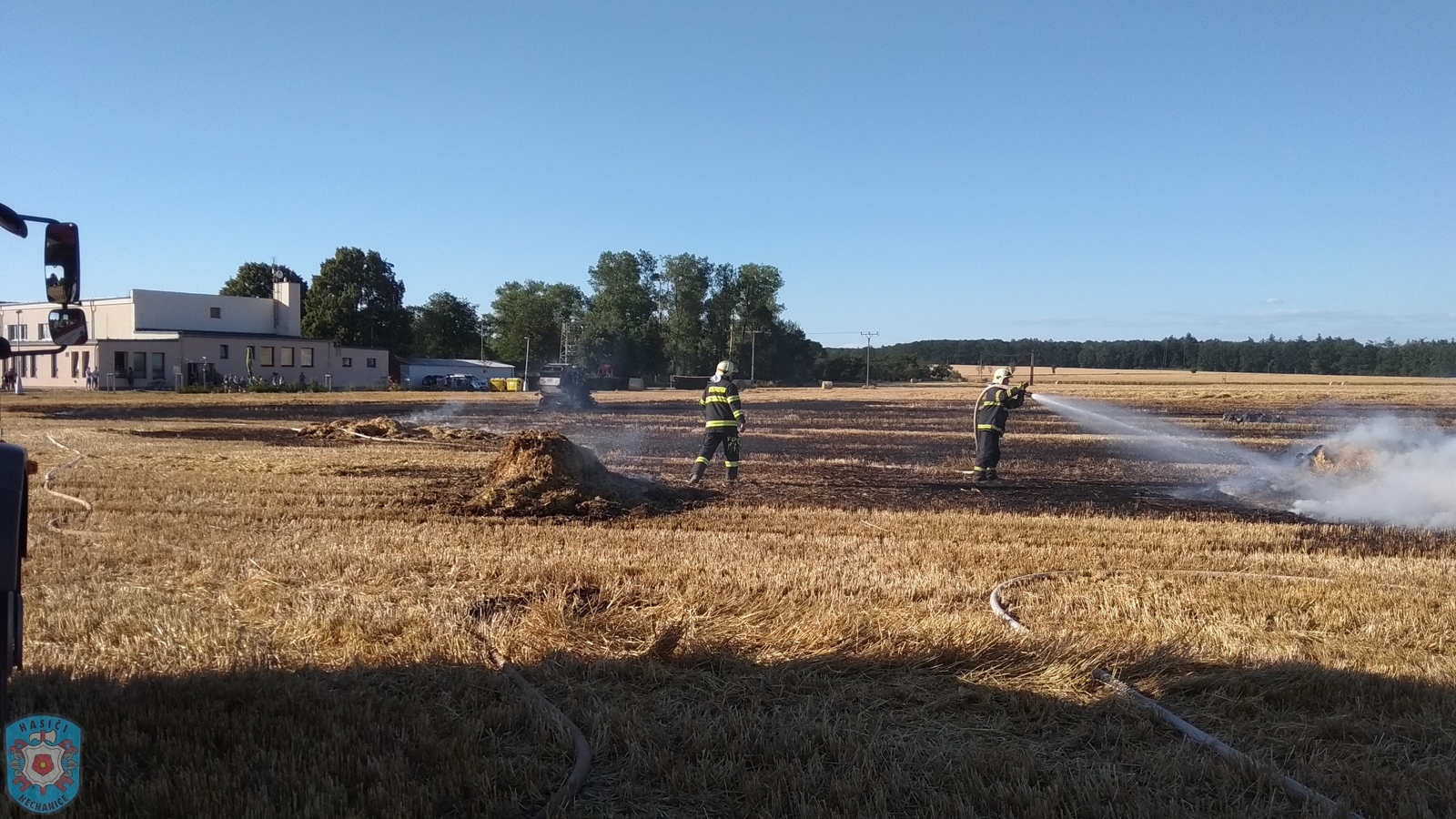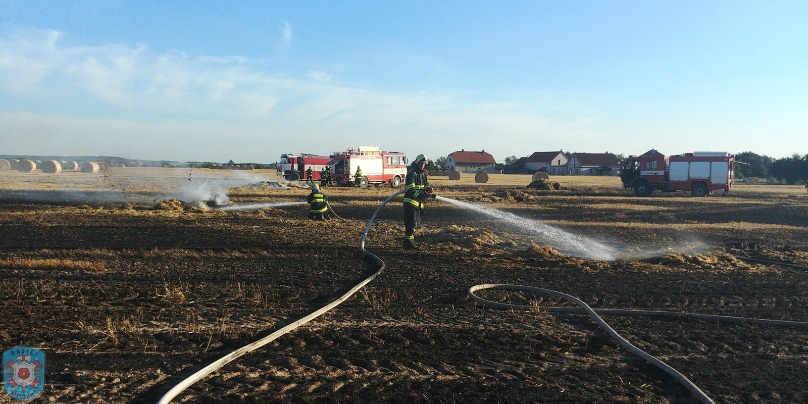 Při příjezdu na místo události bylo požárem zasaženo pole o ploše cca 300x500m na kterém se nacházelo cca 30 balíku slámy a jeden kus zemědělské techniky – lis na balíky – traktor od něj stihli pracovníci odpojit. Zároveň se ještě před příjezdem hasičů snažili o hašení požáru za pomocí cisterny, ale efektivita byla bohužel nízká. V průběhu hašení se na místo dostavila další zemědělská technika, která se podílela na likvidaci požáru. A to konkrétně nakladač, který rozhrabával balíky slámy, tak aby je bylo možno kompletně dohasit. Dále pak taky traktor, který oboral požářiště, tak aby bylo zamezeno dalšímu šíření požáru.