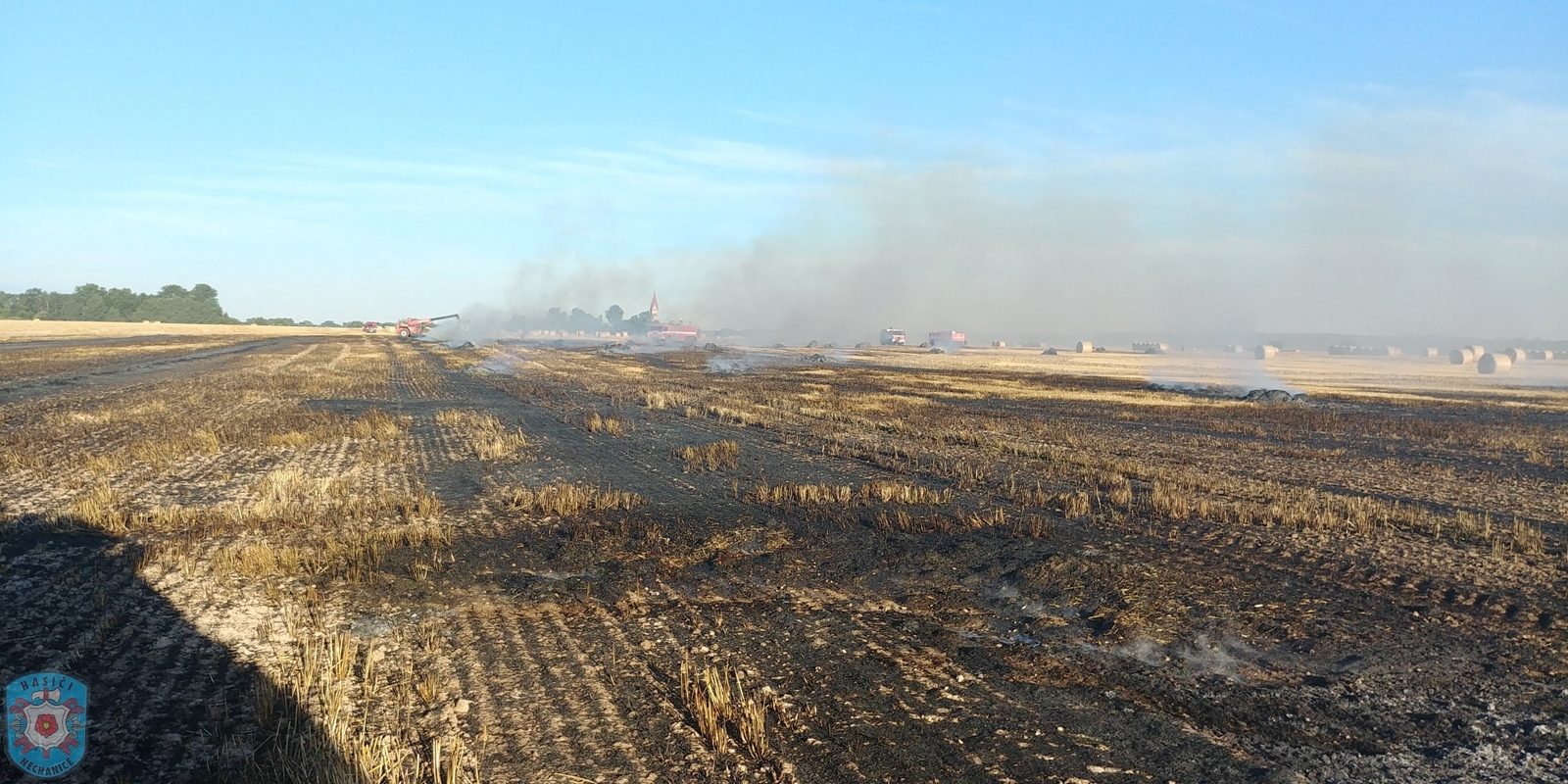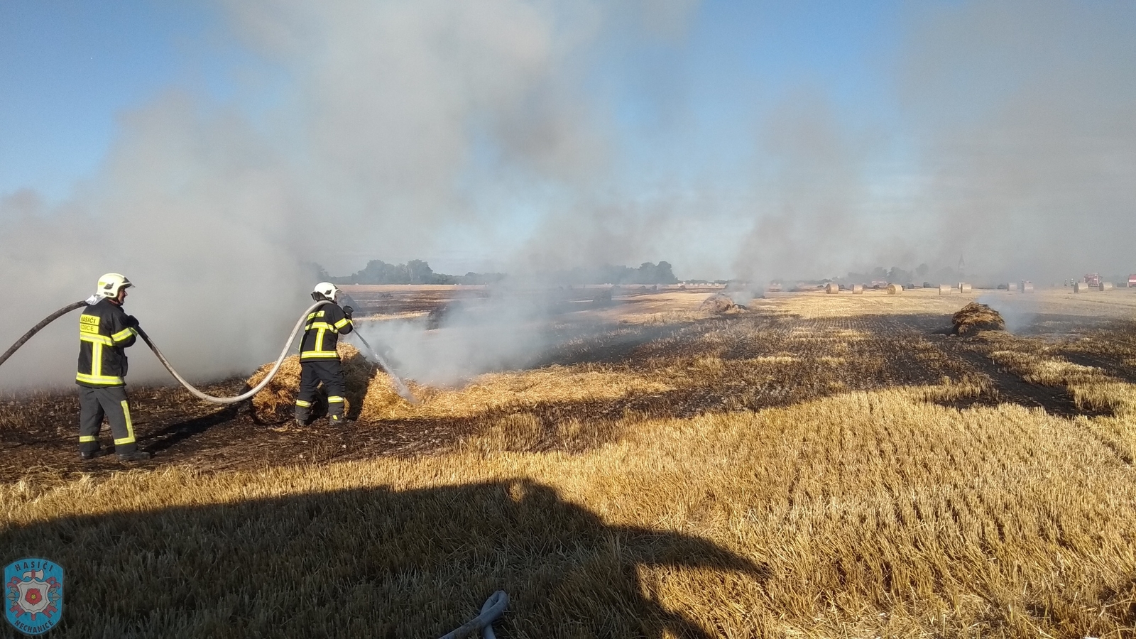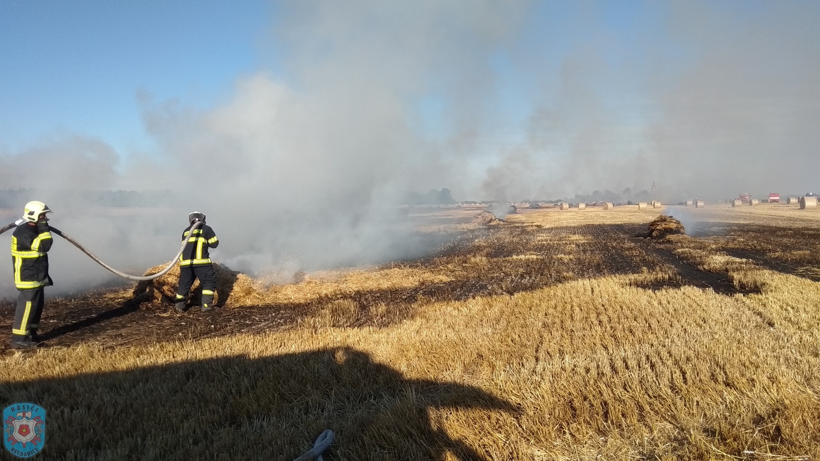 Při příjezdu na místo události bylo požárem zasaženo pole o ploše cca 300x500m na kterém se nacházelo cca 30 balíku slámy a jeden kus zemědělské techniky – lis na balíky – traktor od něj stihli pracovníci odpojit. Zároveň se ještě před příjezdem hasičů snažili o hašení požáru za pomocí cisterny, ale efektivita byla bohužel nízká. V průběhu hašení se na místo dostavila další zemědělská technika, která se podílela na likvidaci požáru. A to konkrétně nakladač, který rozhrabával balíky slámy, tak aby je bylo možno kompletně dohasit. Dále pak taky traktor, který oboral požářiště, tak aby bylo zamezeno dalšímu šíření požáru.