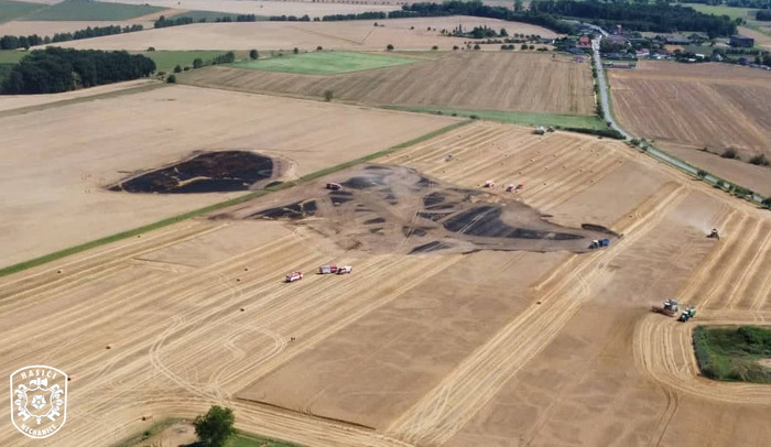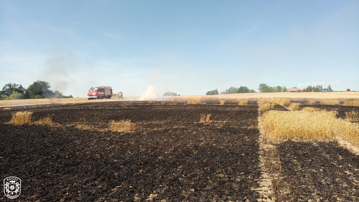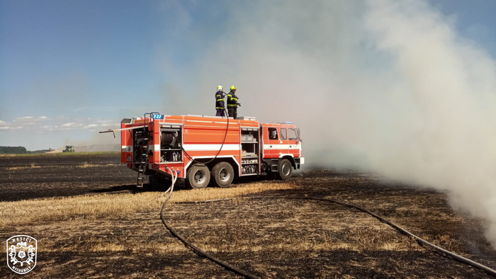 Jednotka vyjela, spolu s profesionálními kolegy z obou královehradeckých stanic a dobrovolnými hasiči z obcí Nový Bydžov, Lodín, Mžany a Sovětice, k požáru částečně posečeného pole v katastru obce Nechanice místní části Suchá. Požár se nacházel na ploše cca 100 x 200 m. Hasiči společně se zemědělci se snažili zabránit šíření požáru po vzrostlém obilí, což se jim podařilo. Po lokalizaci požáru se tak hasiči mohli zaměřit na dohašování balíků slámy. Za pomoci zemědělské techniky byly balíky rozebrány a následně uhašeny. Vznik požáru a výše škody jsou předmětem vyšetřování.