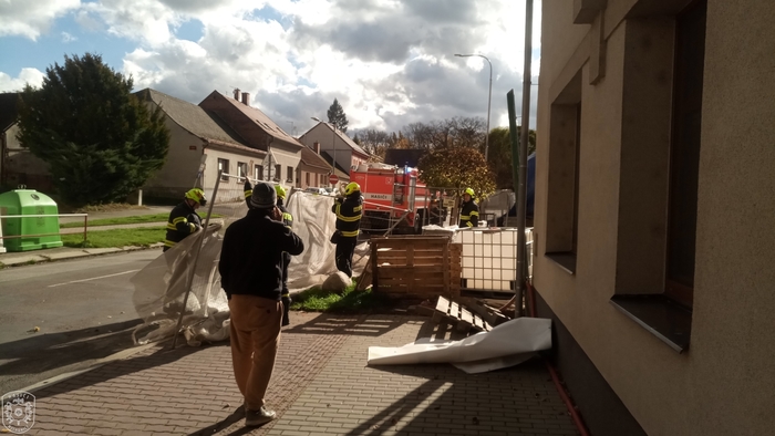 Jednotka vyjela k odstranění překážky z komunikace u domova důchodců. Průzkumem hasiči zjistili, že vlivem silného větru došlo k povalení mobilního oplocení staveniště. Po konzultaci se stavební firmou hasiči oplocení rozebrali a staveniště označili vytyčovací páskou.