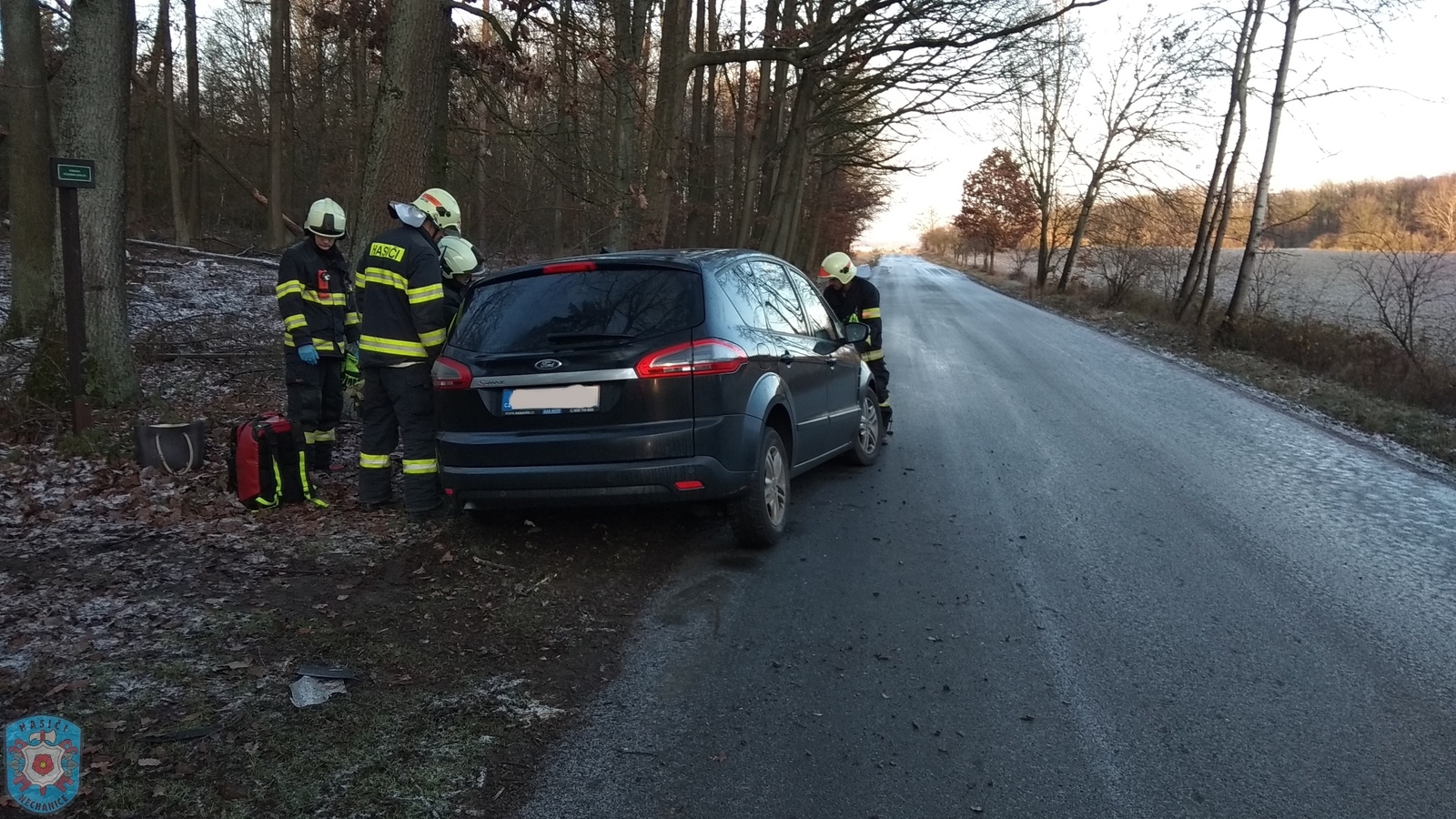 Jednotka vyjela spolu s profesionálními kolegy z Nového Bydžova k odstranění následků dopravní nehody osobního vozidla značky Ford, které vyjelo ze silnice a skončilo v příkopě. Lehce zraněnou řidičku hasiči na místě ošetřili a poskytli ji tepelný komfort. Po příjezdu ZZS KHK jej předali do jejich péče. Zároveň provedli protipožární opatření. Po celou dobu zásahu bylo nutné řídit v místě dopravu kyvadlově. Nakonec hasiči předali místo události PČR a vrátili se zpět na svoje základny.