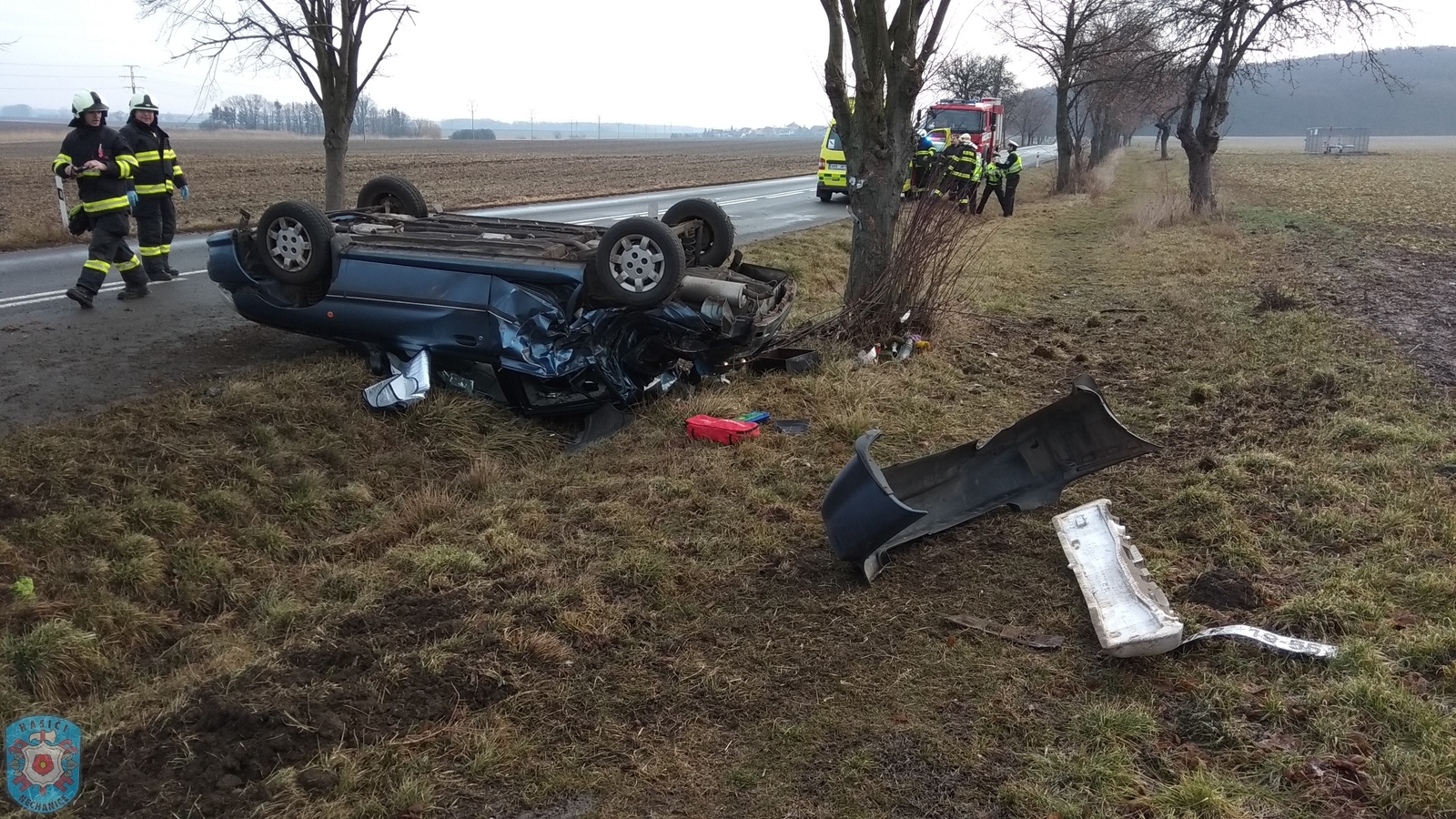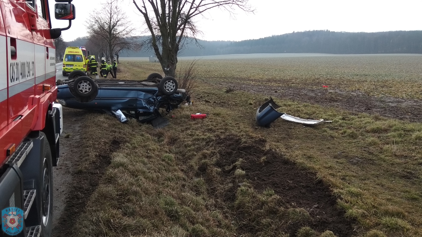Jednotka vyjela spolu s profesionálními kolegy z Nového Bydžova k odstranění následků dopravní nehody jednoho osobního vozidla, které po vyjetí z vozovky narazilo do stromu a skončilo na střeše. Řidička byla vyproštěna svědky nehody ještě před příjezdem složek IZS. Hasiči provedli protipožární opatření, označení úseku (nehoda se nacházela "schovaná" za zatáčkou). Spolupracovali s posádkou vozu ZZS na ošetření a naložení řidičky do vozu ZZS, která byla odvezena na vyšetření do FN HK. Dále prováděli jímaní unikajících provozních kapalin a řídili v místě události dopravu. Po zadokumentování nehody PČR z DI přetočili hasiči vozidlo zpět na kola a pomohli s naložením na vozidlo odtahové služby. Nakonec uklidili komunikaci od následků dopravní nehody a poté se jednotky vrátily na svoje základny.