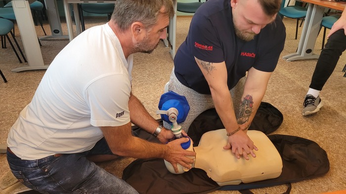 O víkendu 15. a 16.10. proběhlo pravidelné školení jednotky v poskytování základní kardiopulmonální resuscitace rozšířenou o použití automatomatizovaného externího defibrilátoru. Jak víte, naše jednotka je již pár let vybavena přístrojem AED, díky tomu jsme se mohli zapojit do široké sítě tzv. Firstresponderů, které zdravotnická záchranná služba královehradeckého kraje využívá právě u osob, u kterých je podezření na náhlou zástavu oběhu.